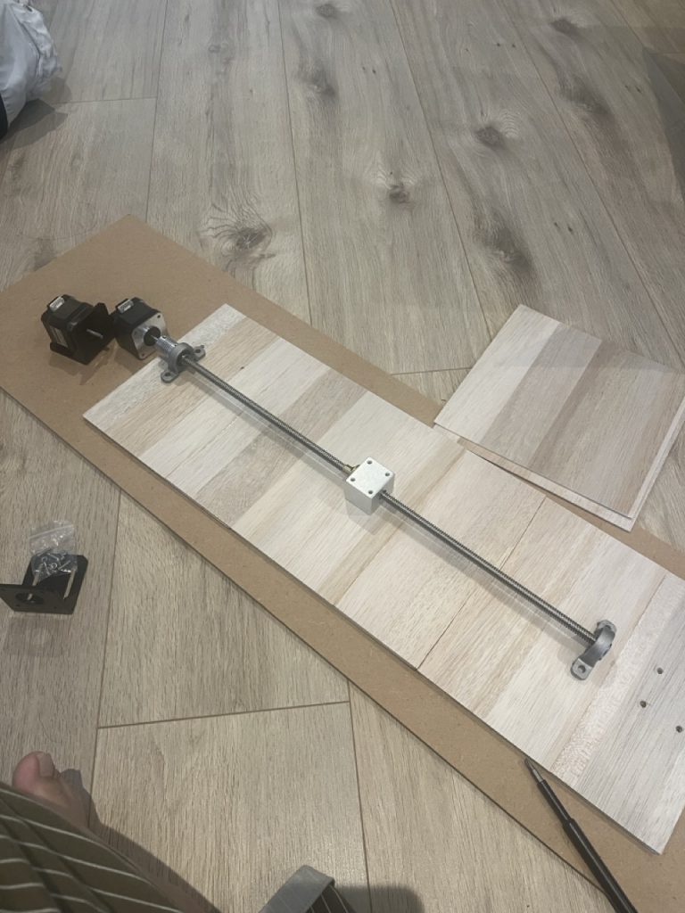 Tomorrow’s goal is to first create a hole on one side, check whether the motor fits well, confirm that there’s no issue with mounting, and ensure that the bolts don’t block the motor from fitting in. After that, I will create the hole on the other side. If I still have time afterward, I also plan to position the rail and do the drilling.