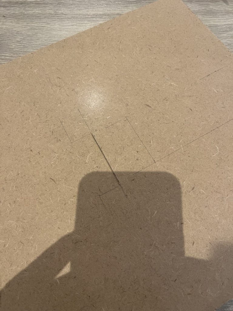 While thinking about this, I realized that the issue occurred because of the height between the motor and the motor bracket—and that solving just this would fix everything. Coincidentally, the thickness of the board I bought happened to be exactly right. So I came up with the idea of cutting out a hole that exposes only the front part of the motor bracket, and attaching the motor bracket under the wooden board. The problem is that the wood is too thick to cut a hole using only a craft knife. Therefore, I booked the 3D workshop for tomorrow and plan to use a cutter there to make the hole.